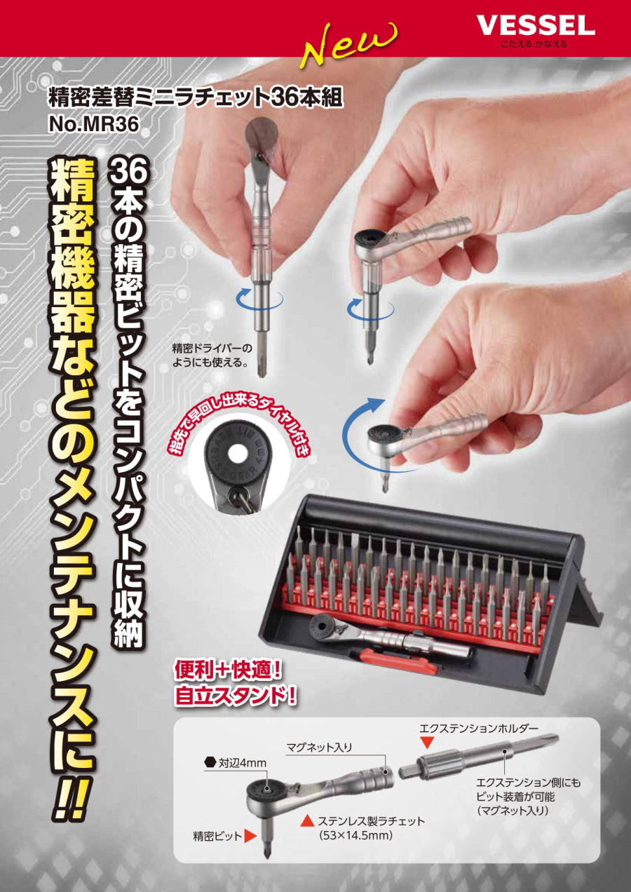 2026年2月初旬、国内トップ工具メーカー「ベッセル(VESSEL)」より、現場の期待を超える2つの革新的新商品が登場します。超多機能な精密セット「MR36」と、メガドラシリーズの進化系「900RT-7P」。それぞれの魅力を余すことなくご紹介します。