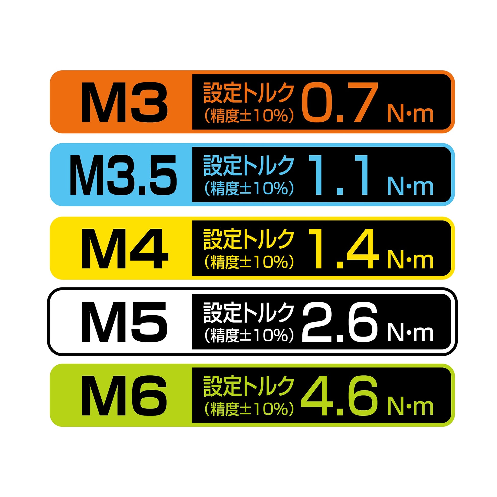 ●設定トルク値は配電盤での使用を想定しています。他の用途では合わない場合があります