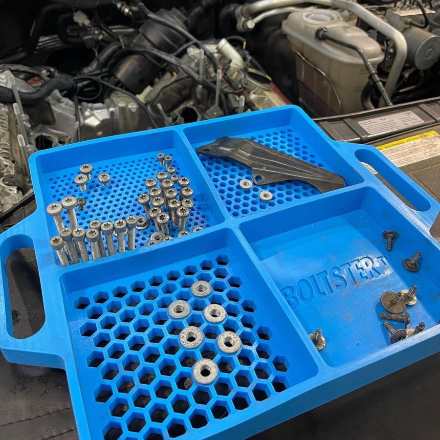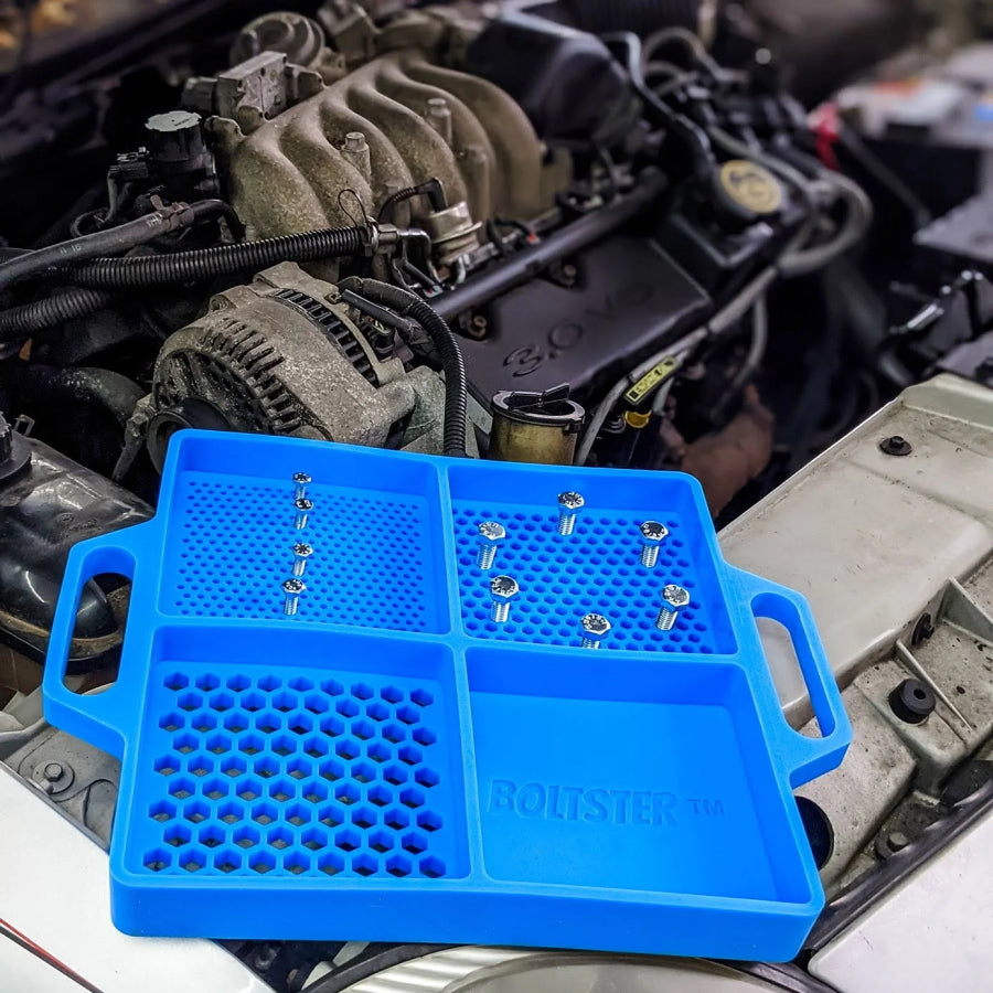 Boltster BTS-100003 フレキシブル オーガナイジングトレイは、自動車整備・機械修理・木工・航空機整備などの現場で、ボルトやネジ類、その他の小物を整理するためのトレイです。