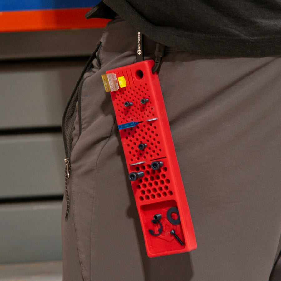 ビットやヒューズ、ワッシャーなどを一括で保持し、移動中や高所作業時の紛失リスクを低減します。