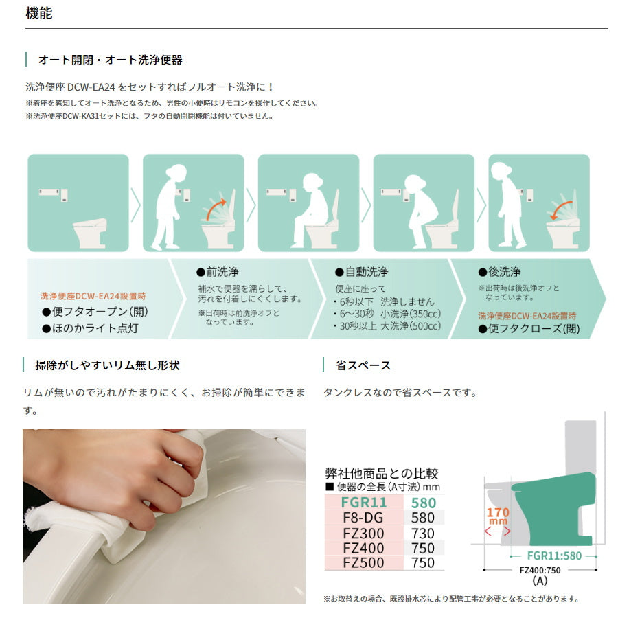 ※洗浄便座DCW-KA31セットには、フタの自動開閉機能は付いていません。