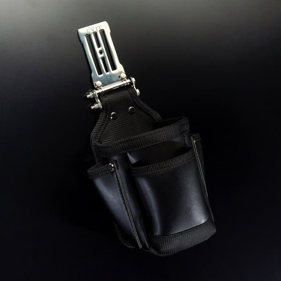 EXITシリーズ初の小物ケースが登場。サイズはS、Mの2サイズあり、作業時に必要な工具や資材などの収納に使い易い寸法設計。腰道具スペースを捻出したいユーザーにも薦められるコンパクトケース。補強部分にはナイロン生地を採用。独自形状のメタルプレート&連結金具と合わせ、フェイクレザー特有の軽量性、コストパフォーマンスに優れながらも目を惹くポイントに拘ったEXITオリジナルホルダー。