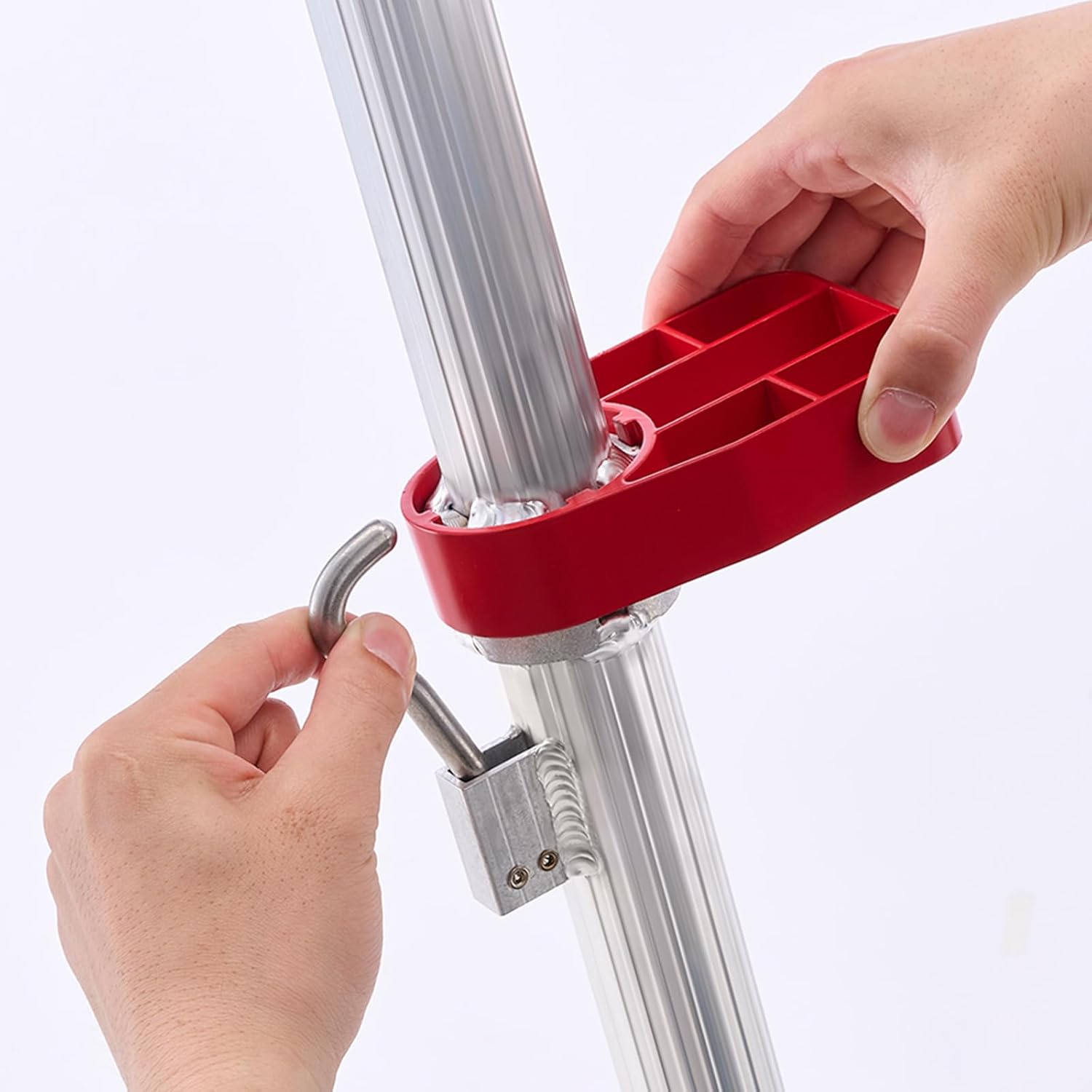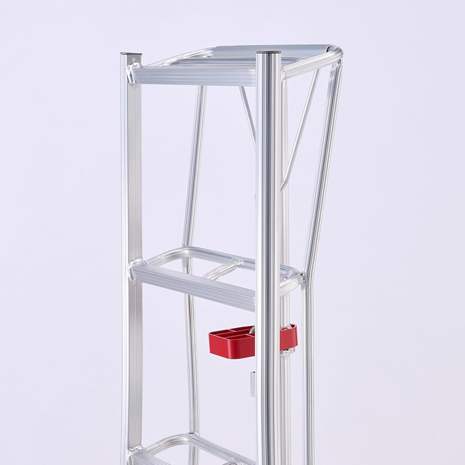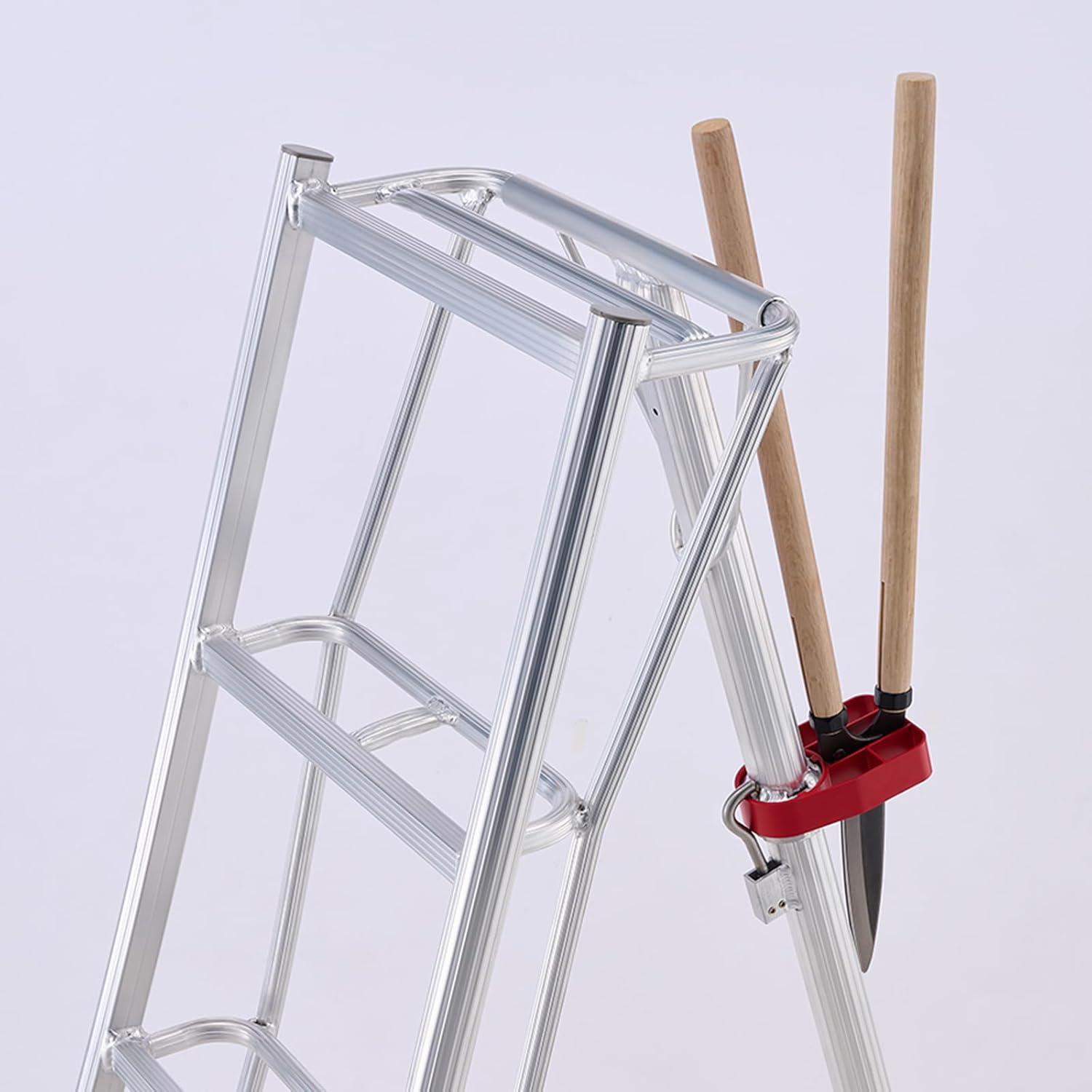 道具の置き場を増やして作業効率を上げたい方へ。園芸用ハサミなども収納可能な物置台付き。 使用しない場合は収納できる可動式だから持ち運びにも邪魔にならない。 物置台付きは長谷川だけだからこそ、現場の「置き場ストレス」を減らしたい方におすすめです。