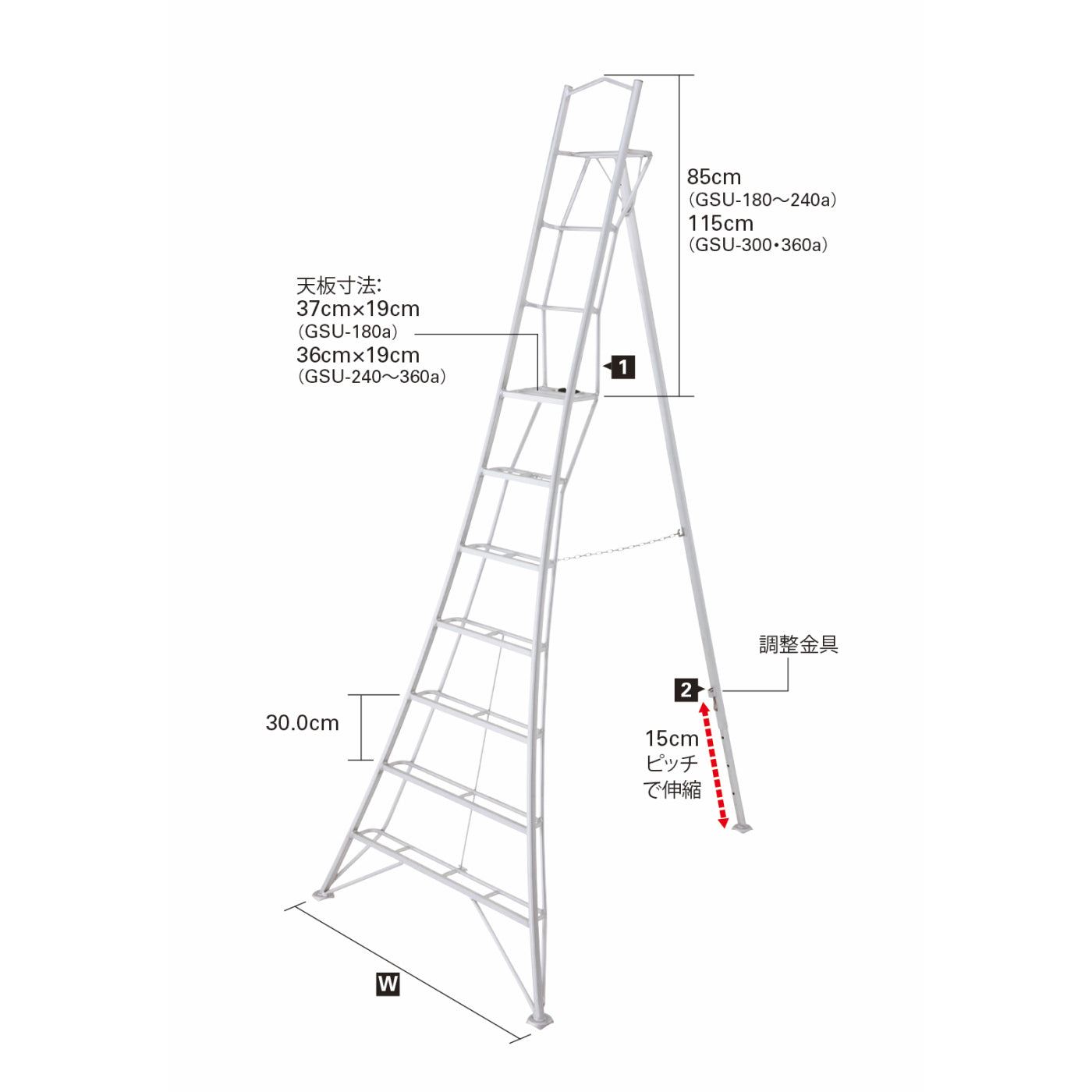 天板に乗って作業が可能な上わくつき三脚。上わくがついてとても安心!