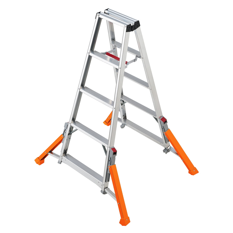 高所作業の安全性を劇的に高める「アウトリガー」を脚立本体に一体化。長谷川工業の技術が詰まった「ハチ型 RLH」は、プロの現場が求める「絶対的な安定感」と「運搬のしやすさ」を両立させた次世代モデルです。