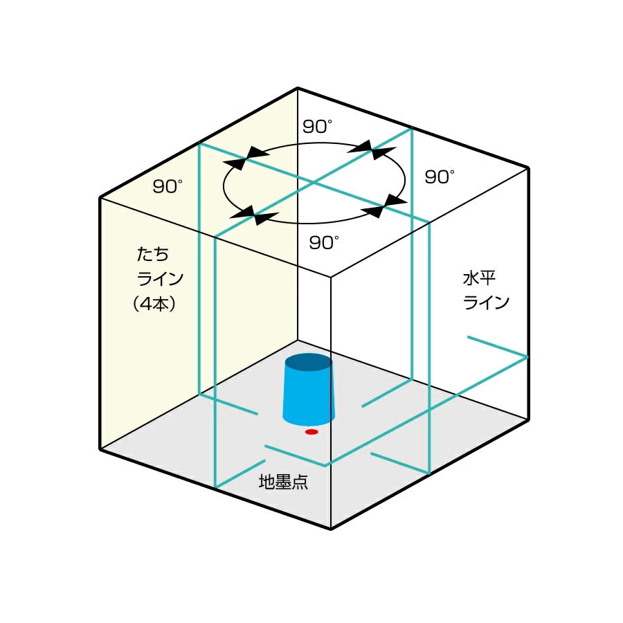 ・傾斜アラーム:約±2°でレーザー光点滅およびアラーム音