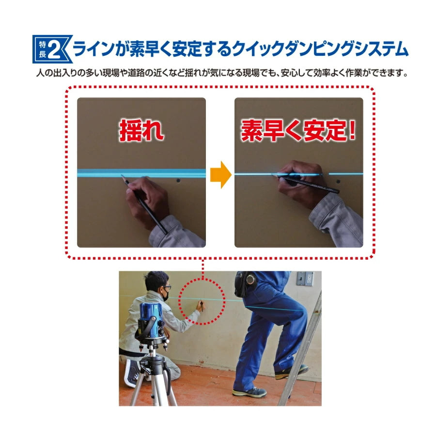 ・傾斜アラーム:約±2°でレーザー光点滅およびアラーム音