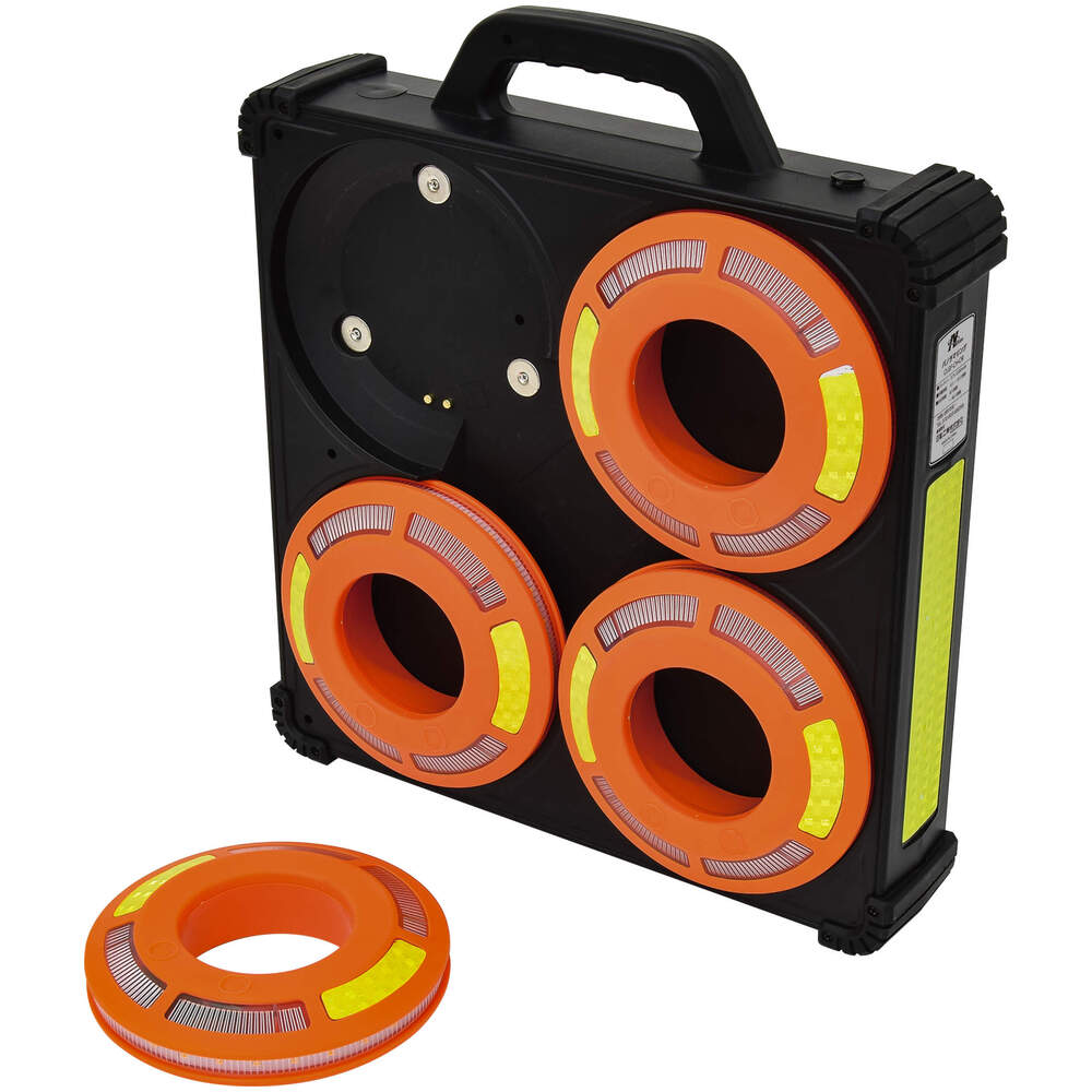 屋内・屋外兼用の充電式LED警告灯です。最大8台まで電波同期が可能で、取り外した順にリレー点灯。 工事現場の安全対策、ロードサービス、非常時の警告、複数利用での誘導灯用途に適しています。