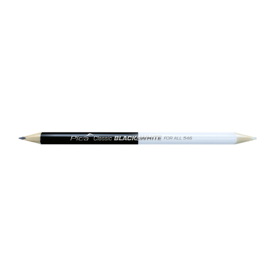 半分が2B万能黒鉛、半分がユニバーサルホワイト芯。明暗どちらの面でもこれ一本で対応。