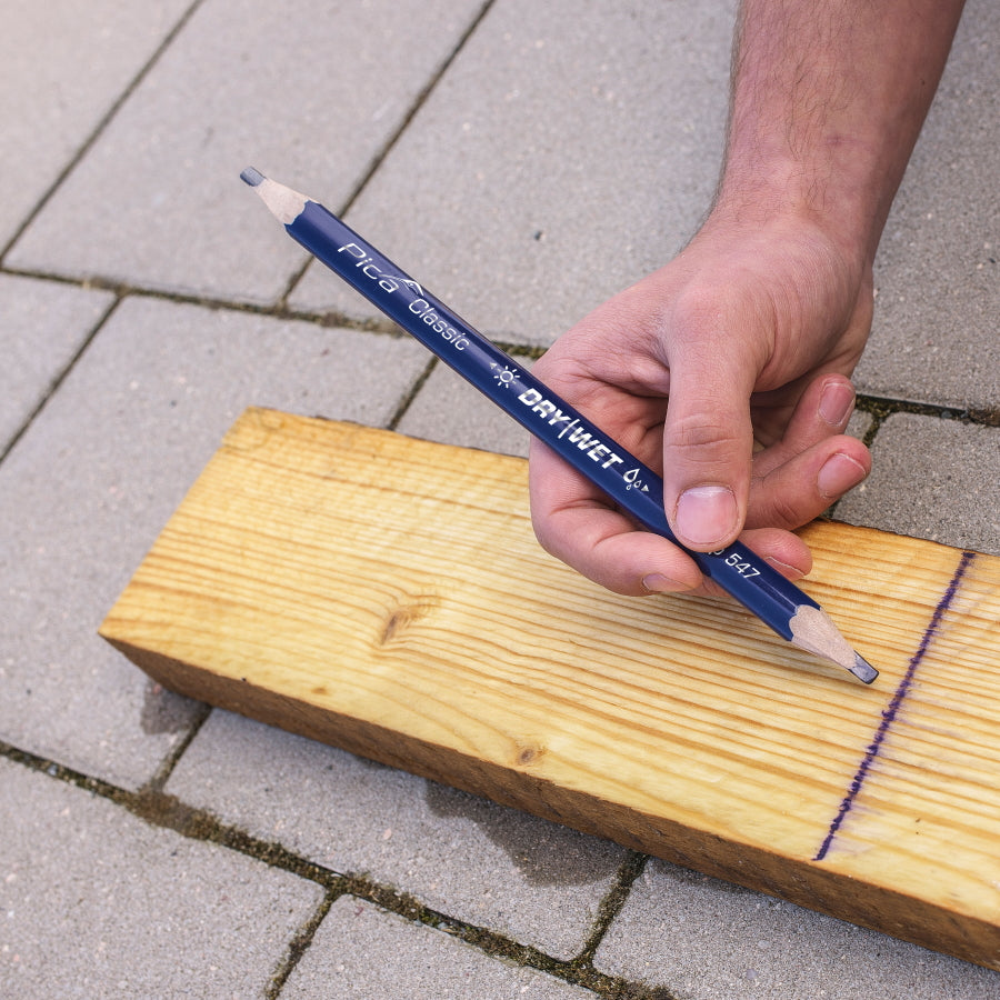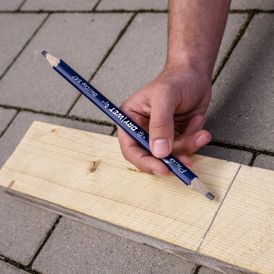 半分は乾燥木材用(2H)、半分は濡れた木材用(アニリンコピー芯)のハイブリッド設計。