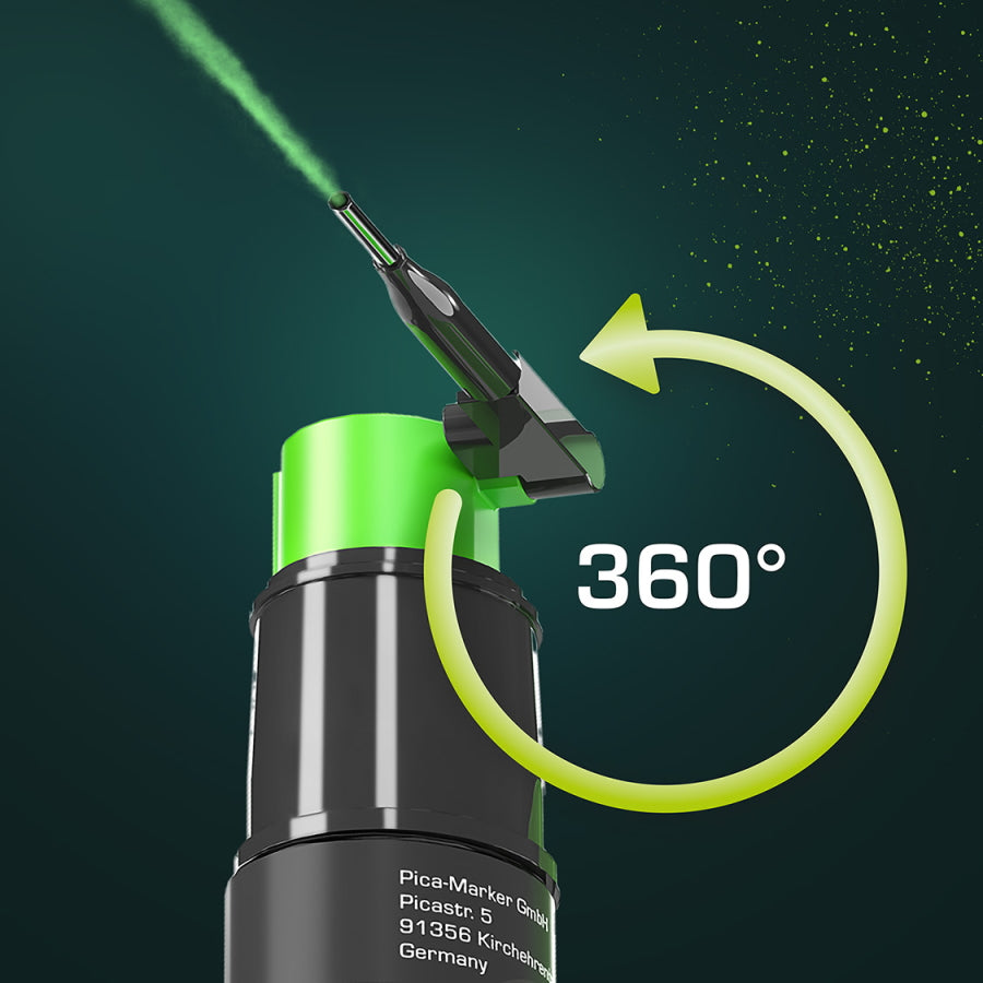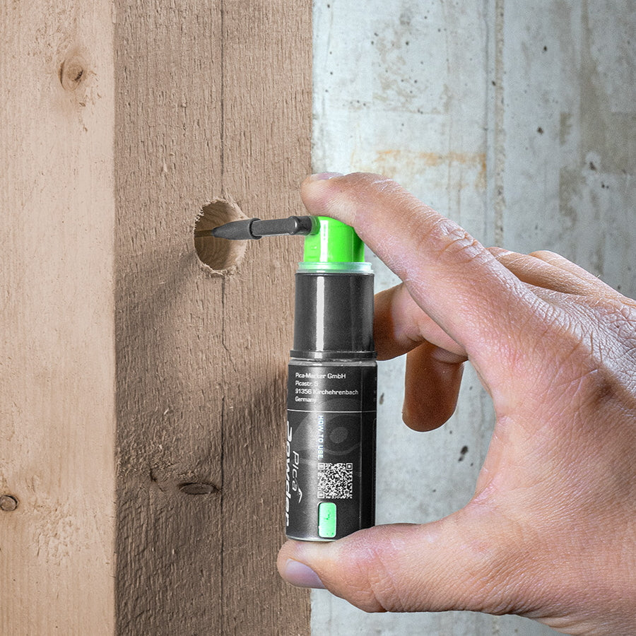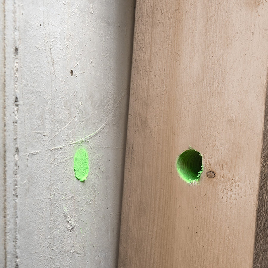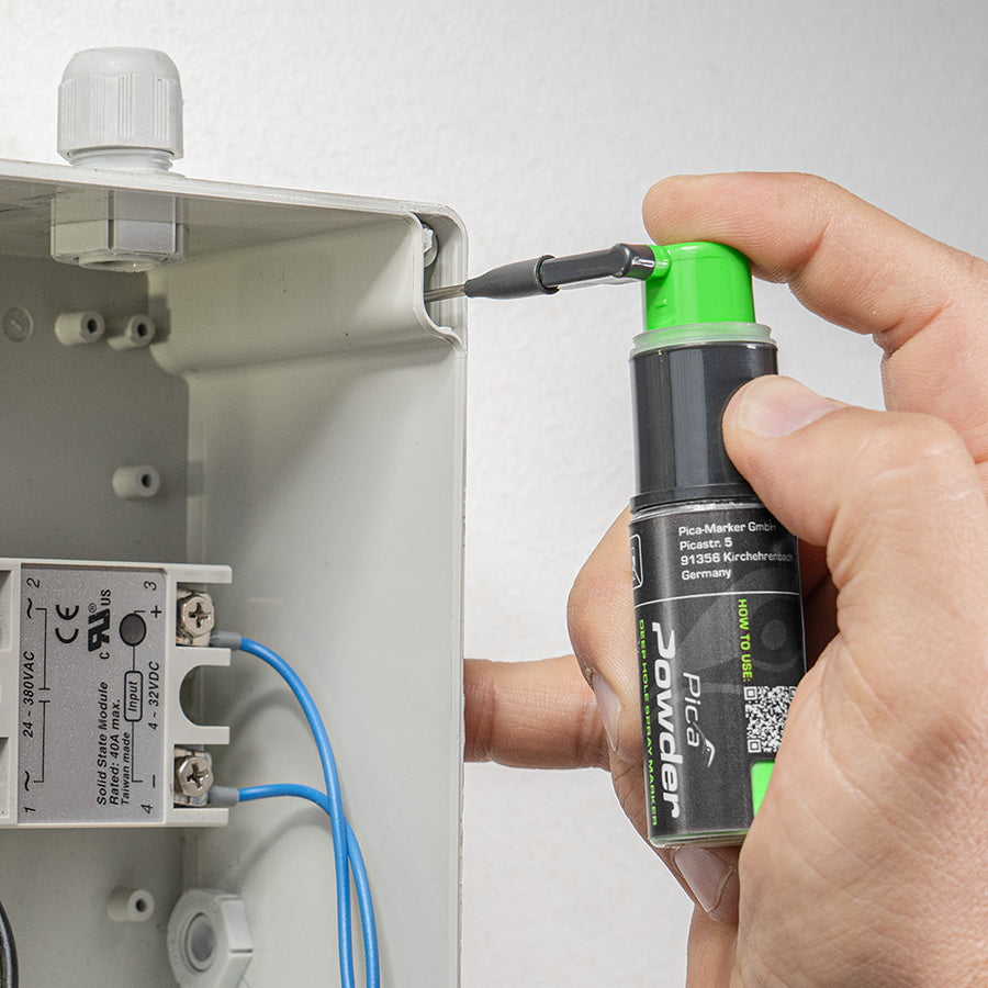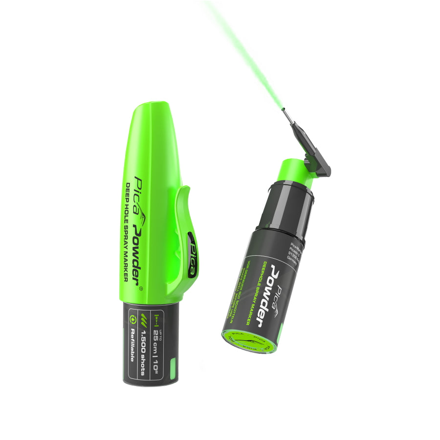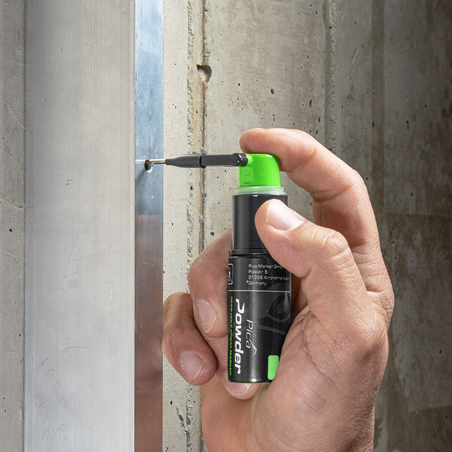 ピカ・パウダーは、深さ25cmまでのドリル穴への正確で素早いマーキングを可能にします。スプレーするだけで、緑色の蛍光チョークベースのマーキングが残ります。