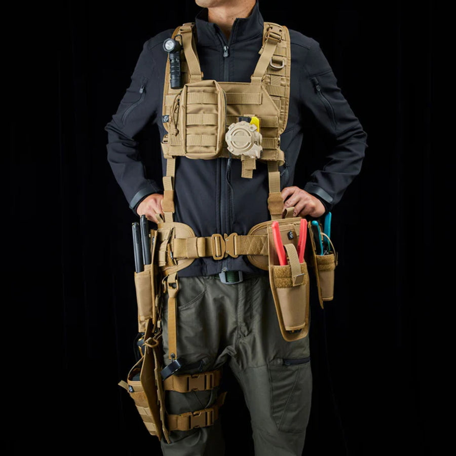 ツールベルトなどのプラットフォームは、タクティカル製品に多く採用されているMoLLE Systemに準拠することで、RYDEN製のポーチ、ホルダー類だけではなく、既に世の中に星の数ほど存在するMoLLE規格のアイテムを自由に組みこんで自身の装備をカスタマイズできます。