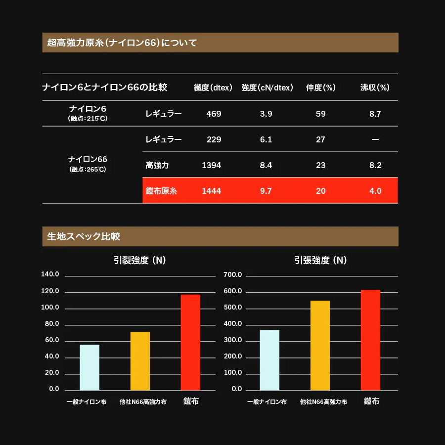 ・高い耐久性を誇る、メイド・イン・ジャパンの高強力繊維「鎧布」