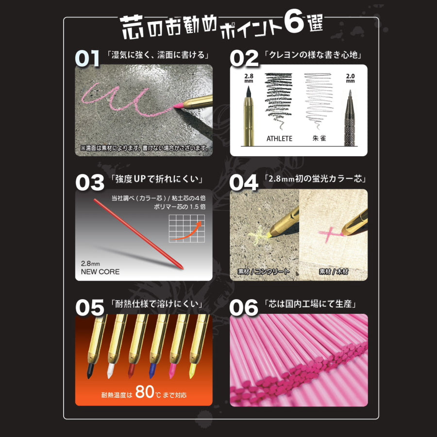 - 2.8mm芯で初の蛍光カラーが登場!(蛍光ピンクと蛍光イエローの2色)