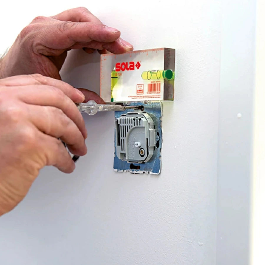 コンパクトアクリル水平器 R100 1622142(R100)精密な CNC フライス加工の水平および垂直バイアル非導電性、飛散防止アクリルガラスコンパクト、軽量、便利水、熱、寒さに強い1mm方眼の目盛りを印刷透明水平測定垂直測定