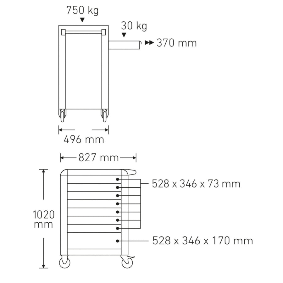 STAHLWILLE(スタビレー) 95/8A-PRO ツールトロリー アンスラサイトグレー (81200166)