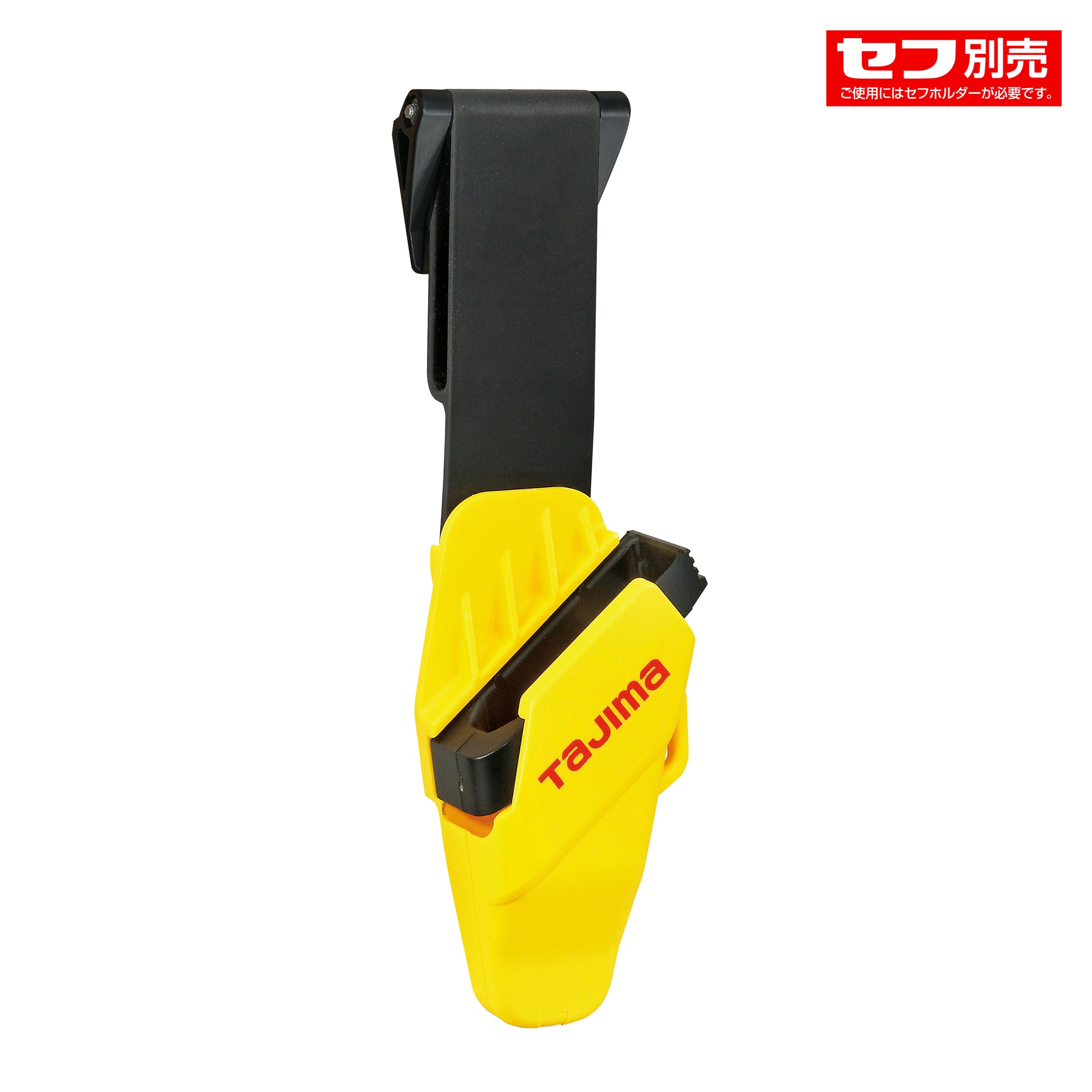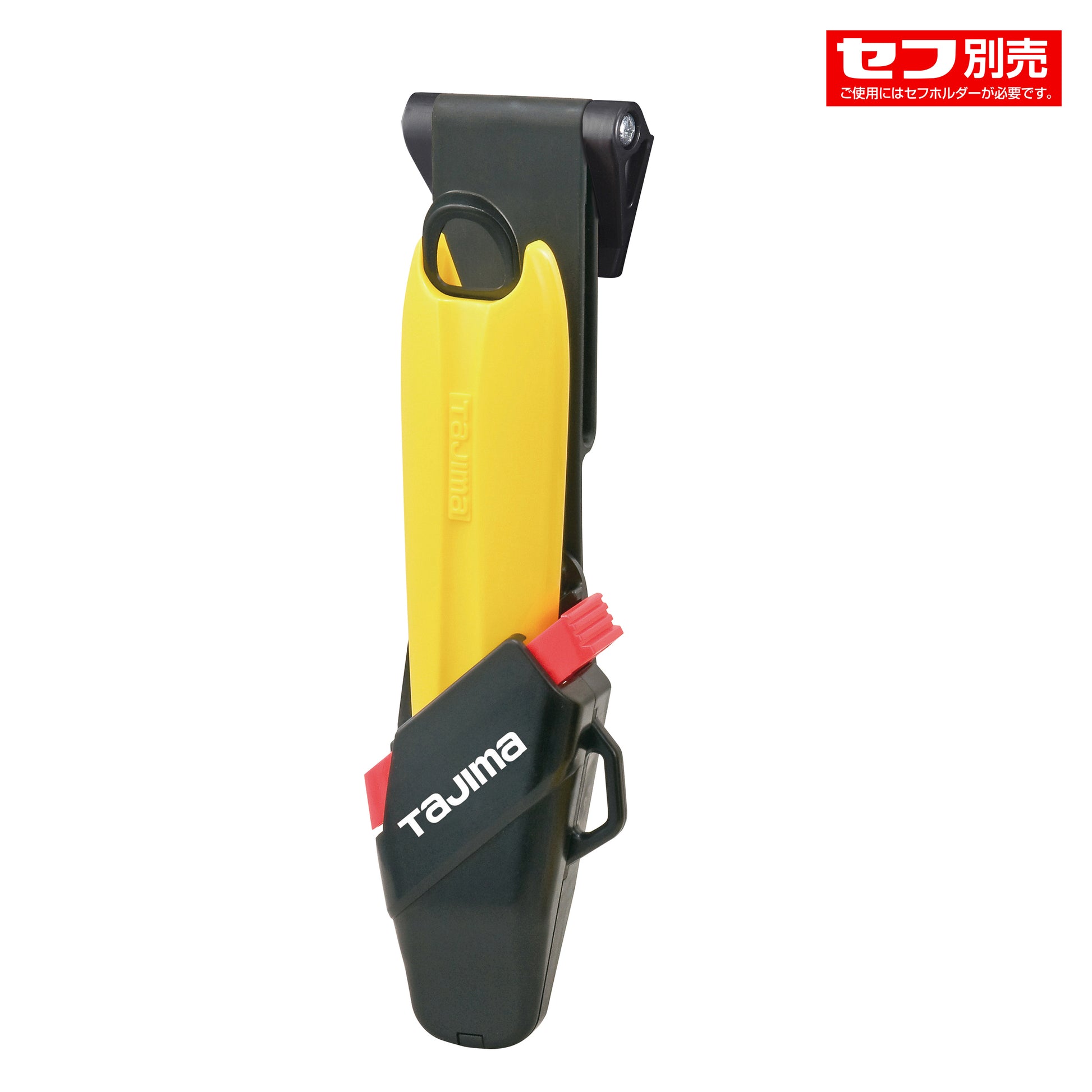 特徴・セフホルダーは別売となります・激しい動きで外れることが無いロック付ホルスター・親指でワンタッチ解除、スムーズに引き抜ける・自分の角度が選べる45度回転ホルスター(3段階調整)・切れ・擦れ・雨・油に強いプラスチック製・安全ロープ取り付け環付でカッターと連結