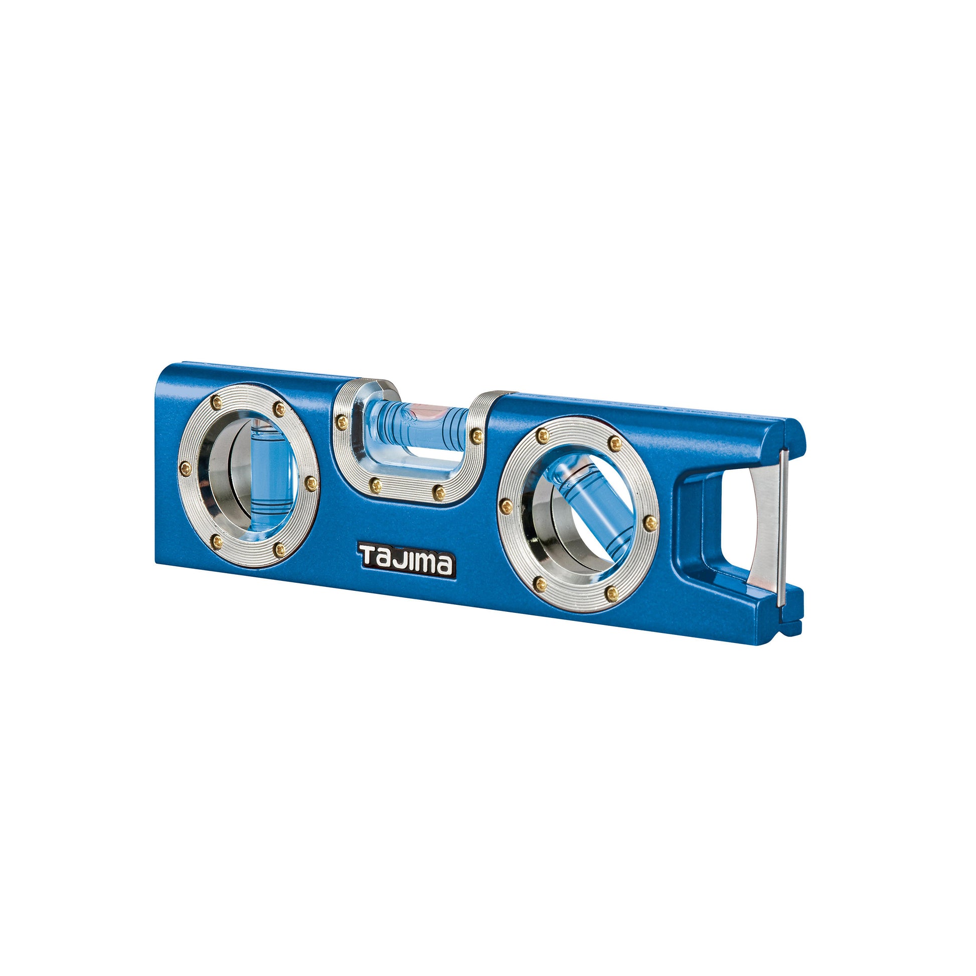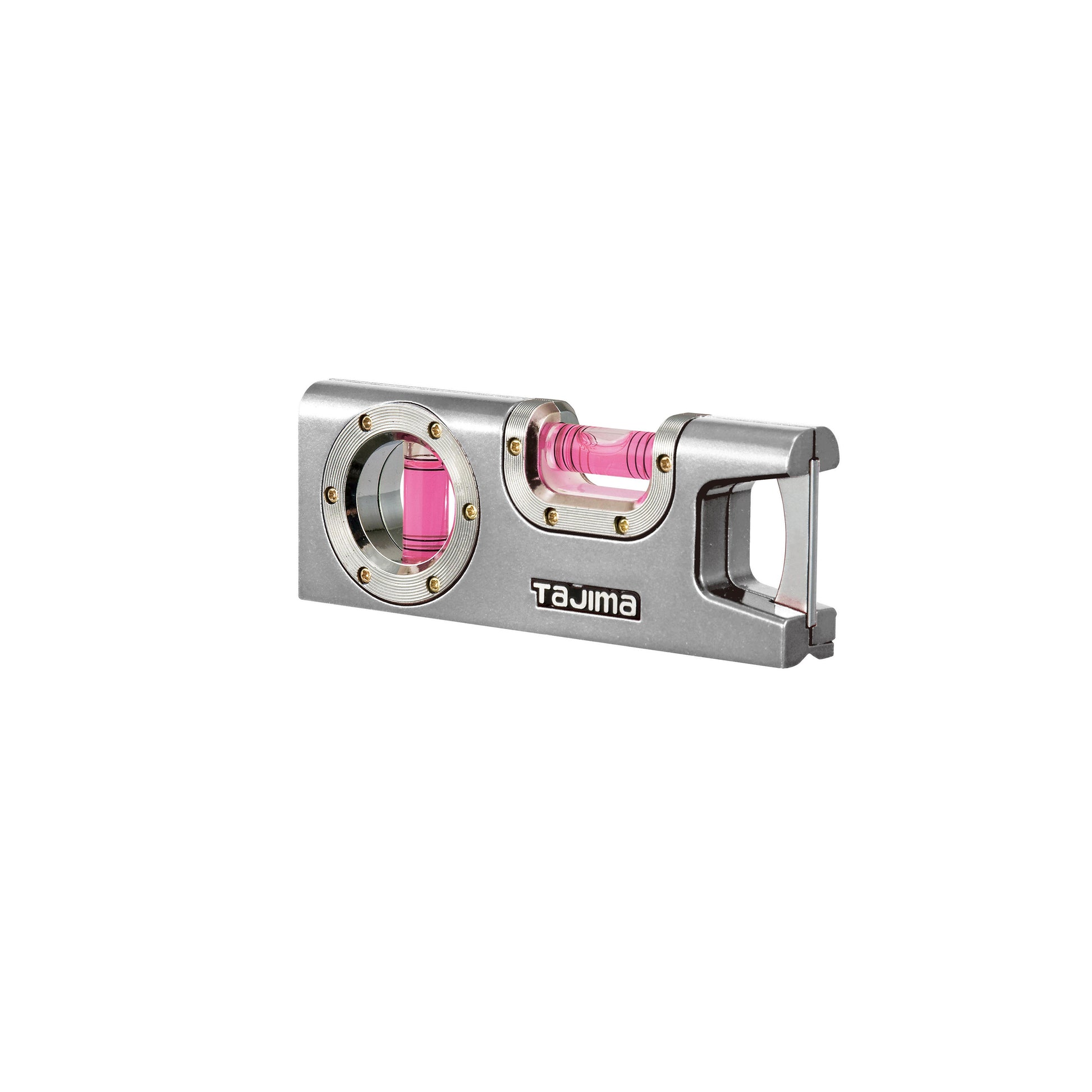モバイルレベルパイプにしっかり固定できるV字溝測定面。磁石付携帯型アルミダイカストボディの水平器。