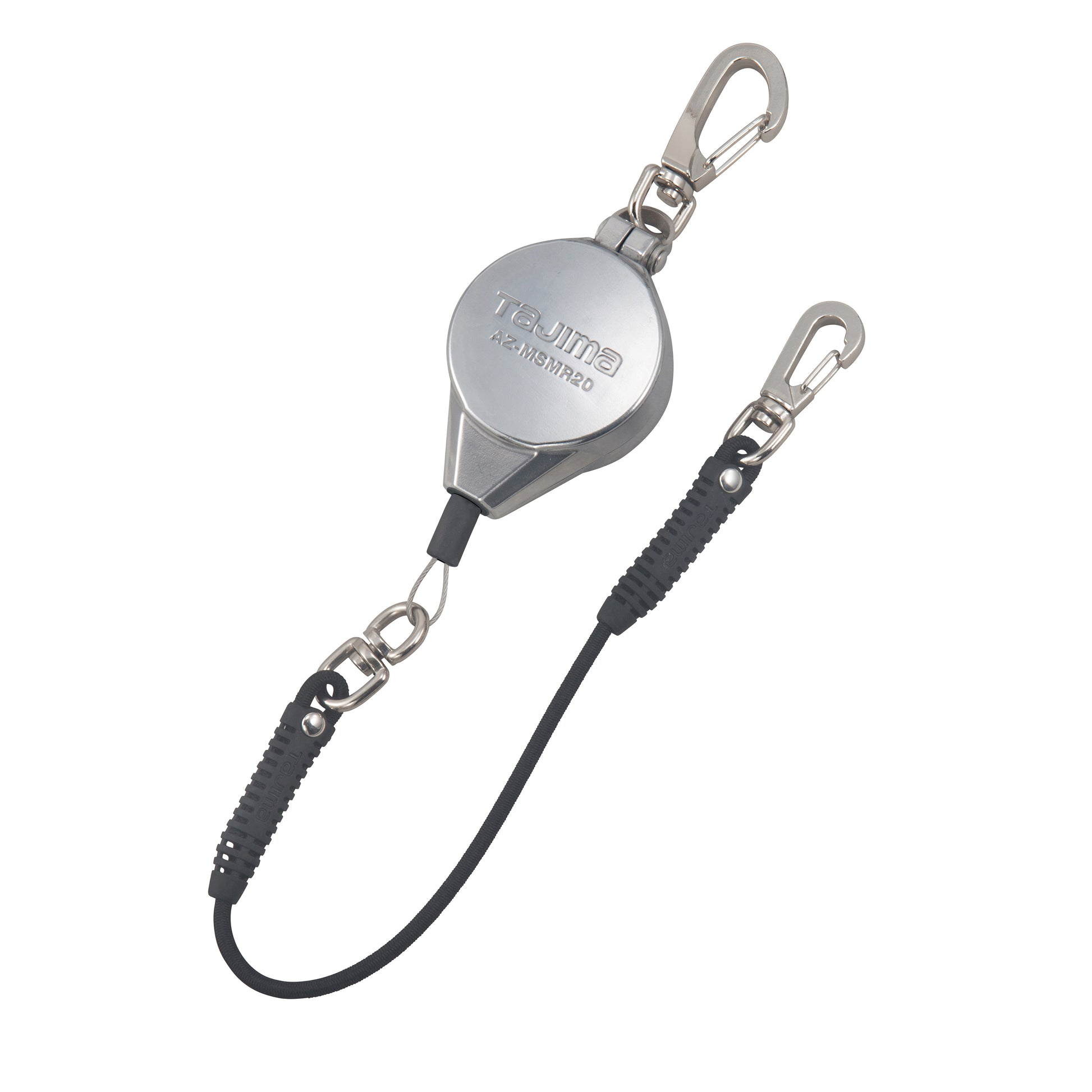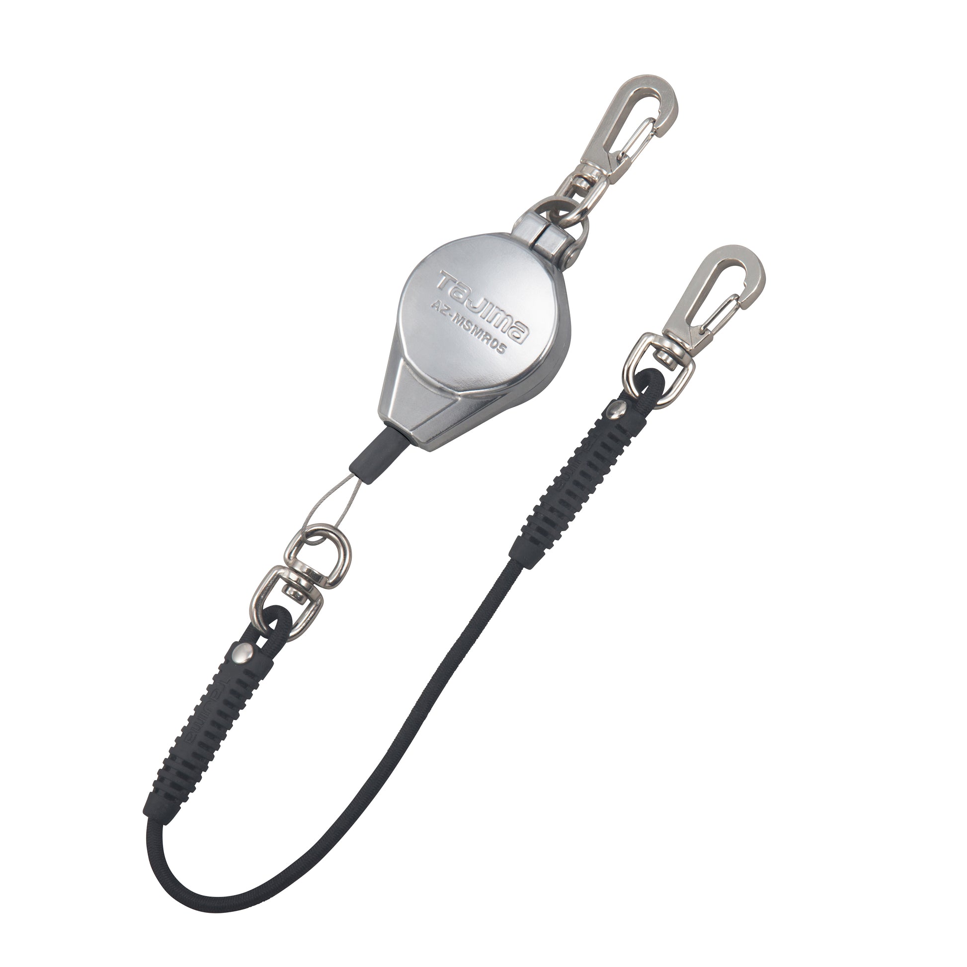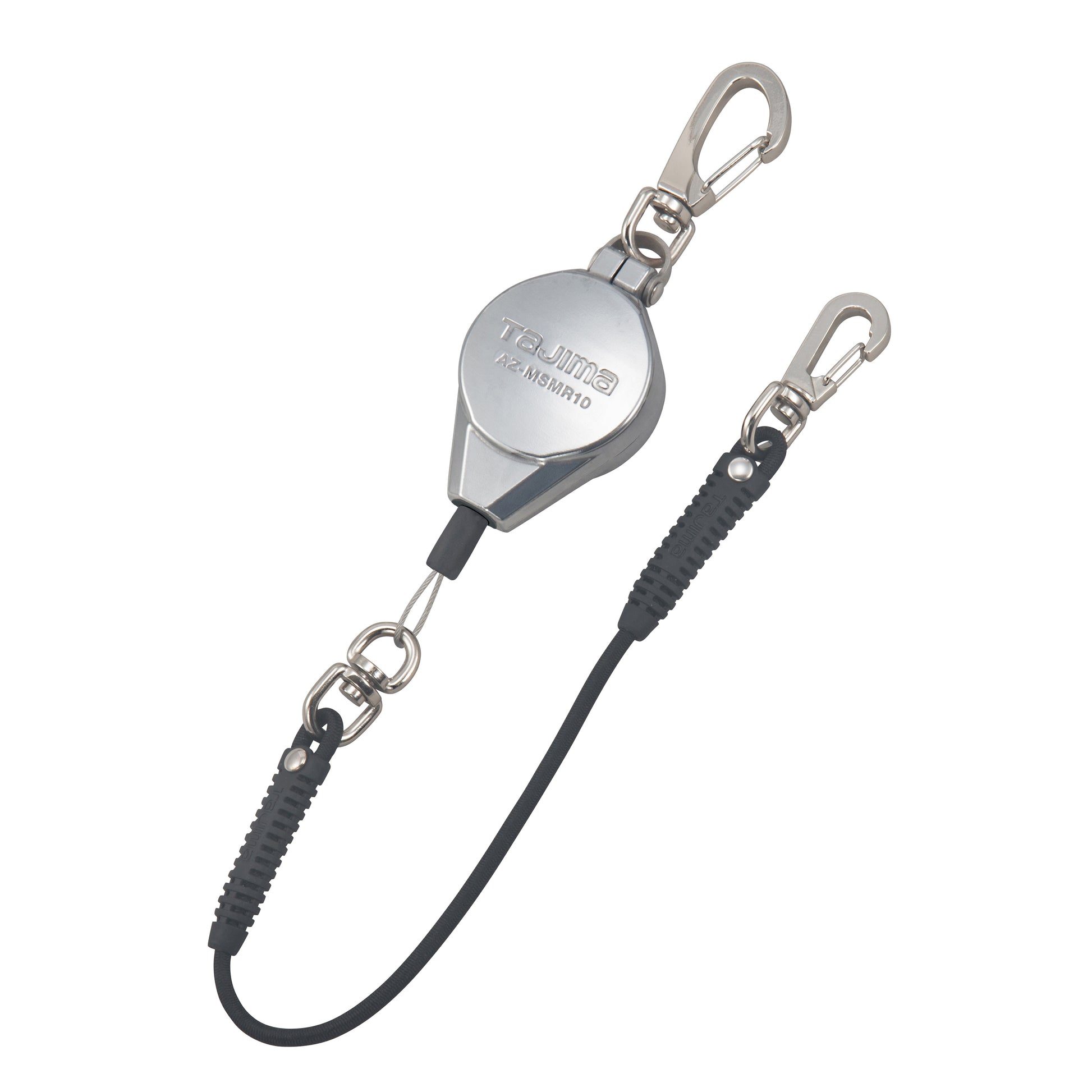 【メタルスマートリール】・腰周りへの取り付けと工具交換時の着脱が簡単なWナスカン・リールを複数取付けてもロープが絡まないので、作業を妨げない。・つねにロープに一定のテンションがあるため、垂れたロープが足場などに引っ掛かる危険がなく、移動しやすい自動巻取り式。・工具重量に負けない衝撃耐久性に優れたアルミダイカストボディ。製品重量は101g(AZ-MSMR05)と軽量。・丈夫な金属ワイヤーを採用。ロープ長さ1,200mm(アシストロープ部含む)。本体に対しスムーズに自動巻取りができます。・ロープ引出しがシンプルで引っ掛からない吊り下げ片巻きタイプ。・万一、工具を落下させてもアシストロープが伸びて衝撃を吸収。工具収納時の巻取りテンションを軽減し腰袋に収めやすい。ロープ長:1,200mm(アシストロープ部含む)ロープ:ワイヤー