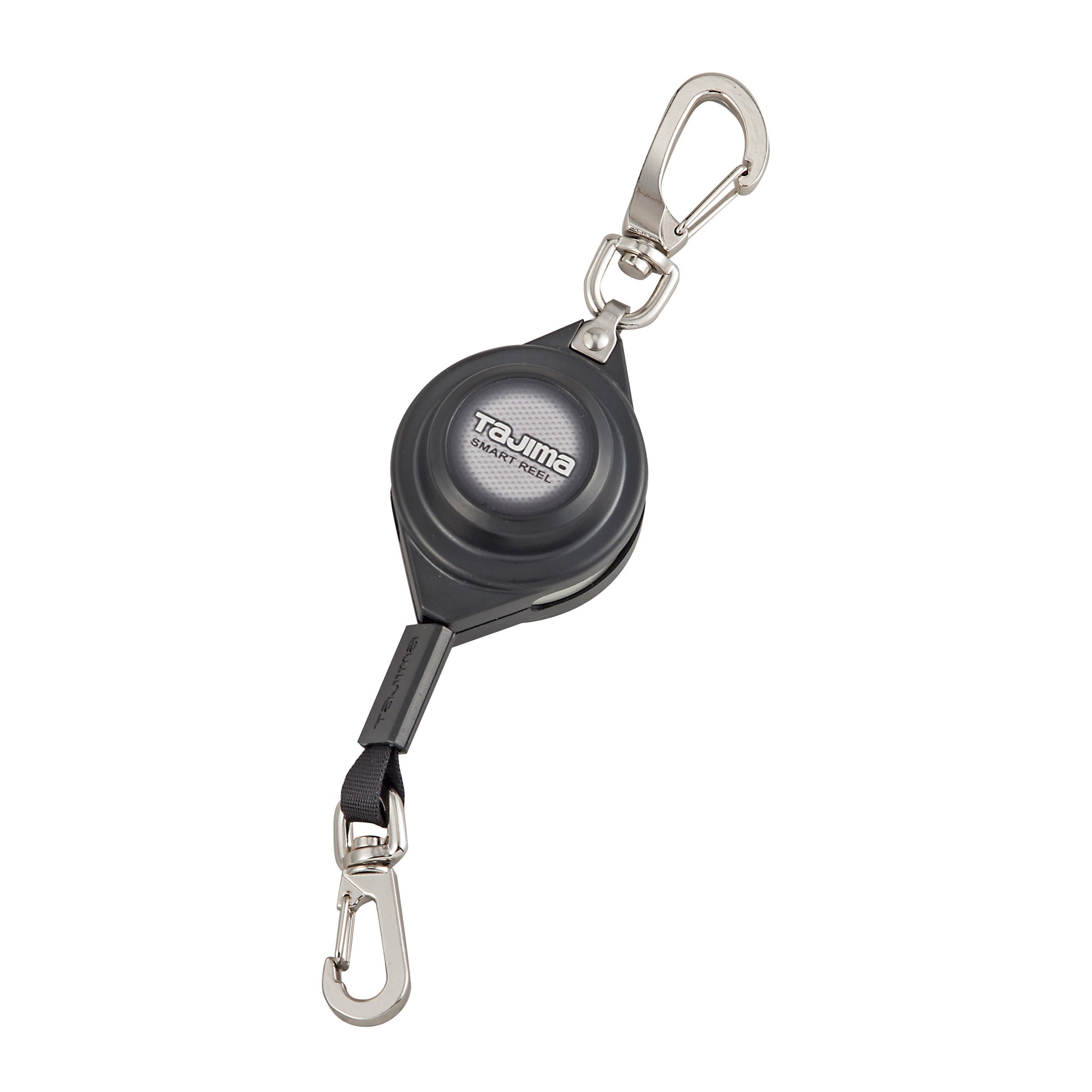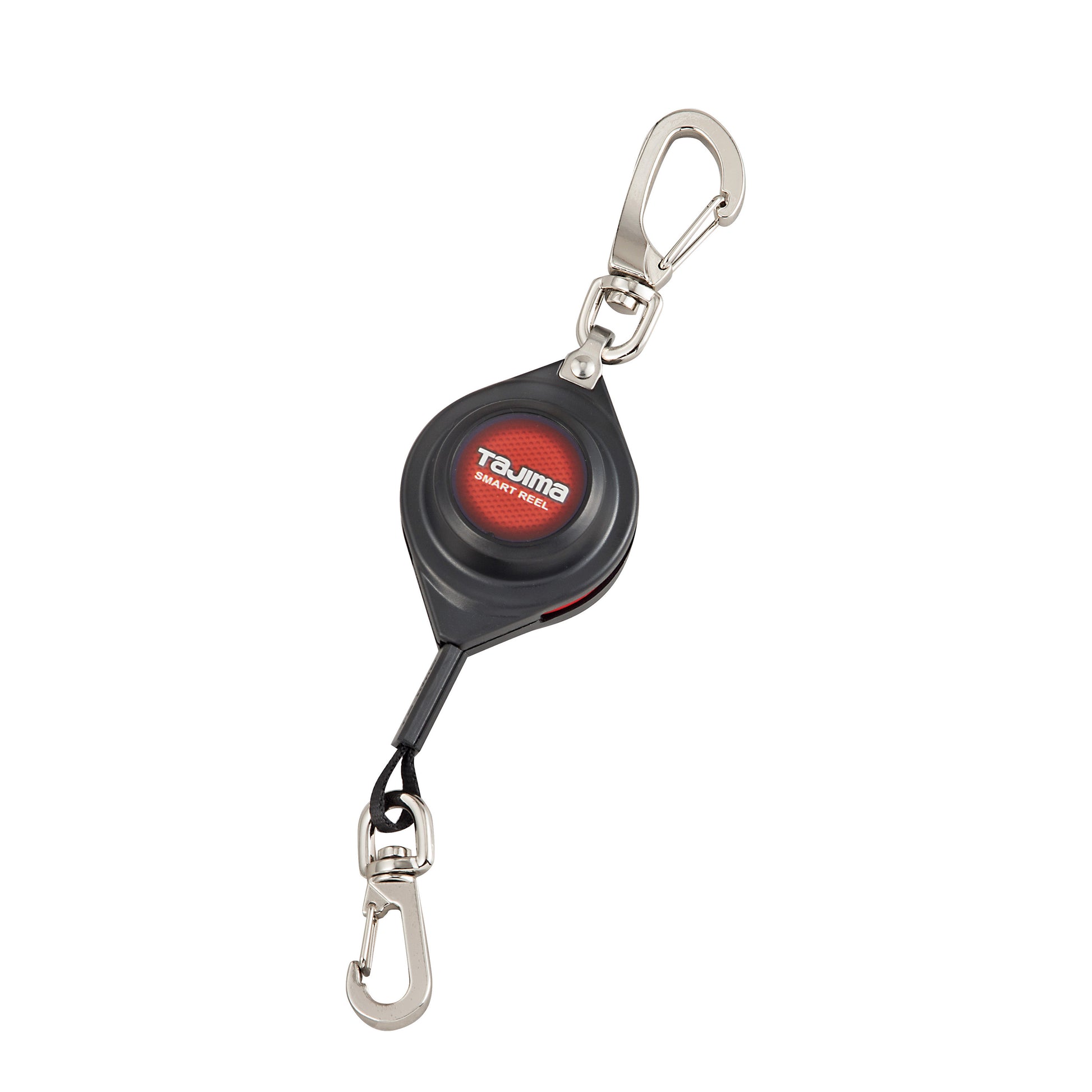 【スマートリール】・自動巻き取り式で邪魔にならない安全ロープ・垂れたロープが引っ掛かる危険がなく移動しやすい自動巻取り式・引き出した長さでロープが自動ロックされるワンウェイロック式・ロープが絡まないから複数掛けも可能・腰元への装着が簡単なナスカン仕様・万一、工具を落下させてもロープが伸びて衝撃吸収し工具の跳ね返りを防止最大伸長:1,200mmロープ:ナイロン