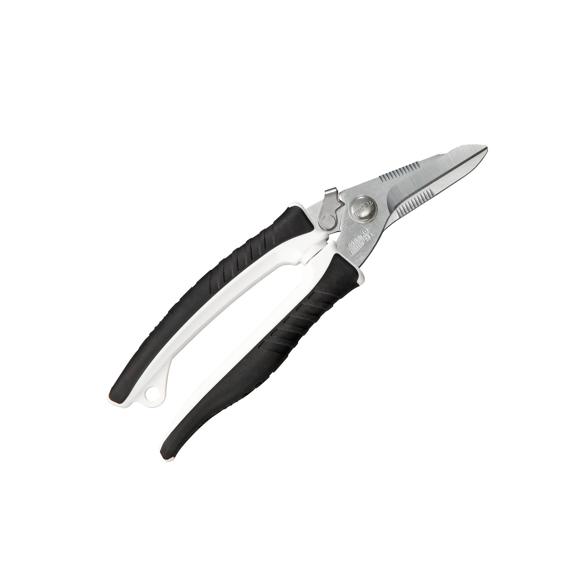 ・ケーブルが逃げないギザ刃を採用しました・刃の背面にバリ取り専用の溝を設け、曲線・直線のバリを除去・すべりにくくパワーの入るエラストマーグリップ・片手でロック出来るストッパー付・高炭素刃物鋼使用でMバーなどの金属薄板も切断可能・安全ロープ取り付け穴付