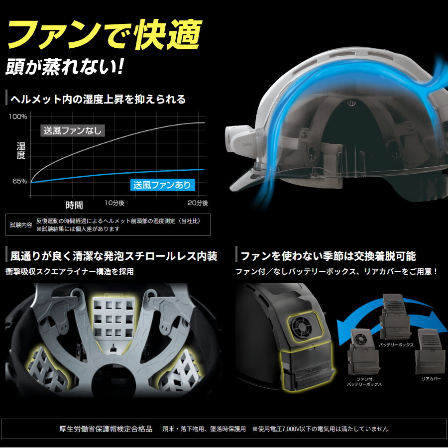 ・電池切れまで同じ明るさ セフメット専用ヘッドライトと送風ファン付