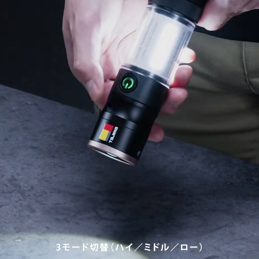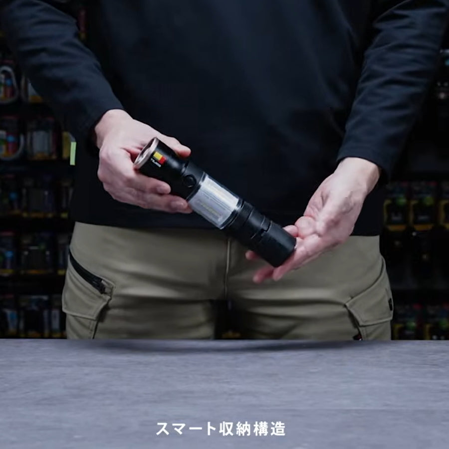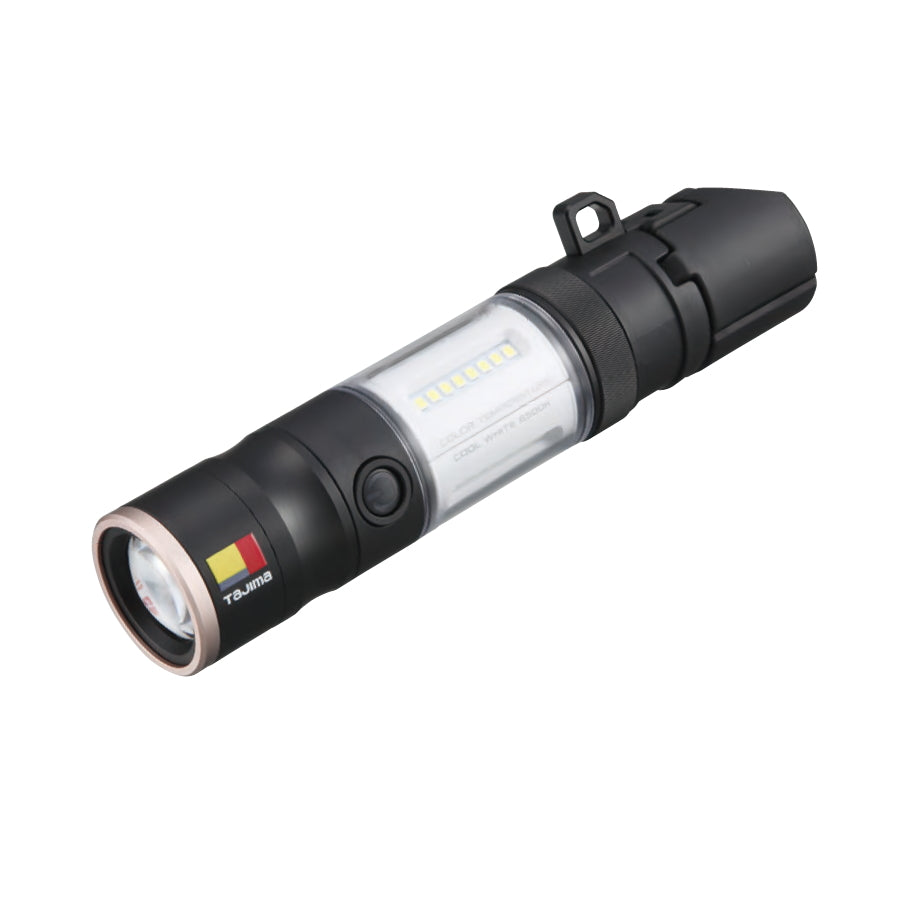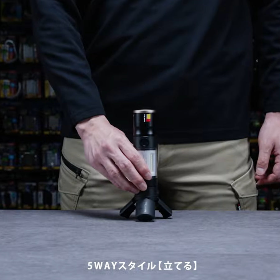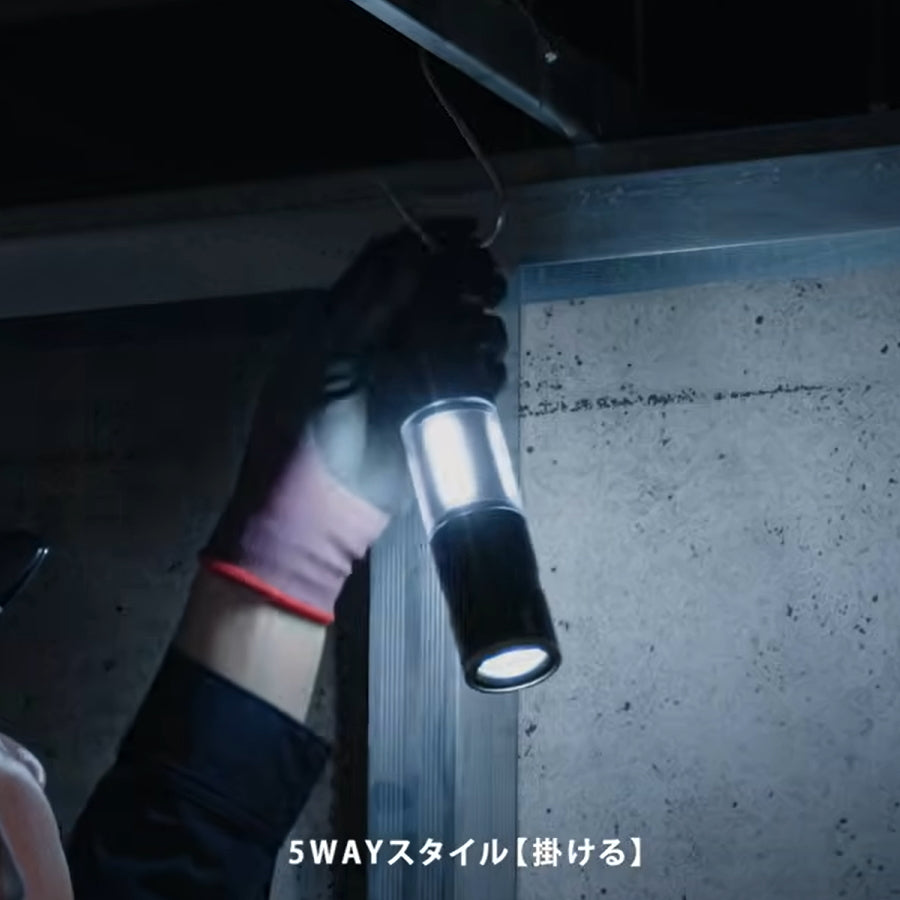 ただのランタンではありません。天面と水平全周を同時に、かつ圧倒的な大光量1000ルーメンで照射。さらに、タジマ独自のセフ連結はもちろん、スライドフォーカス機能や三脚取付まで対応した「5WAY」の使い勝手を実現しました。暗闇を完全に支配したいプロフェッショナルのための決定版です。