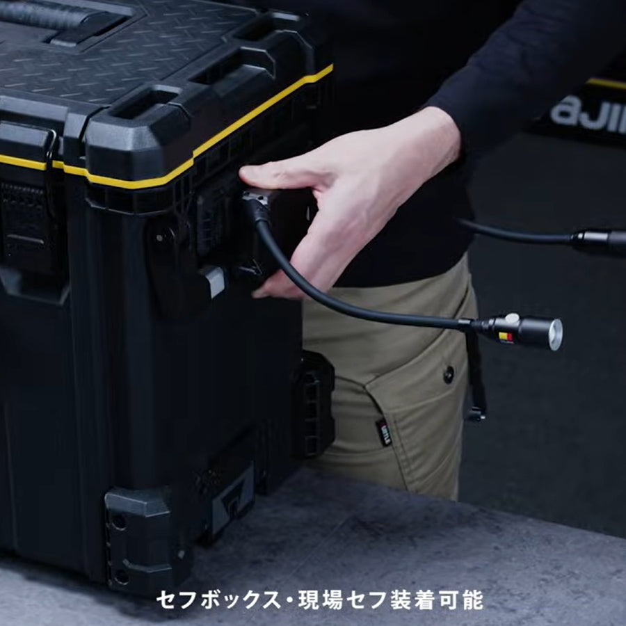 自由自在に曲がるフレキシブルアームを採用し、狙った場所を的確に照射。首に掛けるだけでなく、タジマ独自のセフシステムにも対応しており、セフボックスや現場セフに装着しての使用も可能です。移動中も作業中も、あなたの動きを妨げないプロ仕様の2灯式ライトです。