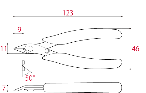 ・細銅線を用いる精密機器などの基盤周辺作業や、アクセサリー製作で必須のピン類切断に。