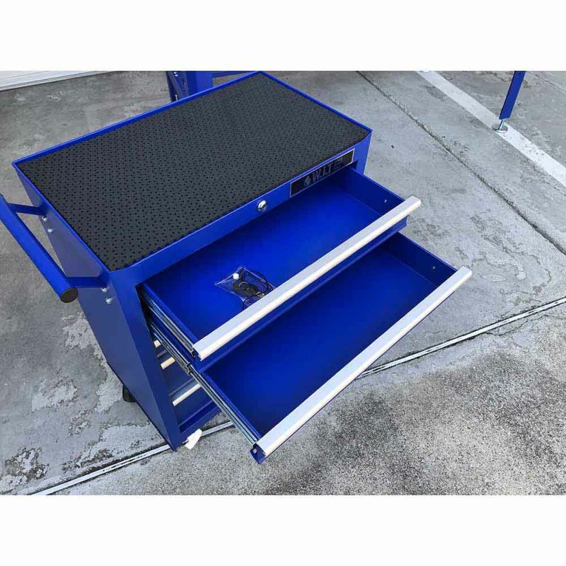 (ワークベンチの下に収納する際は、下に収まる高さまでワークベンチの脚を調整してください。)