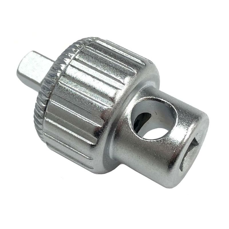 スピンナーハンドルやT型ハンドル、T型スライドバー等に接続することで、ラチェット機構により早回しを可能としたラチェットアダプター。