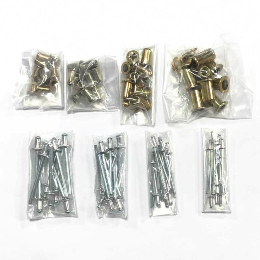 リベットは2枚の鉄板を重ねて固定したい時に、ナッターはタップを使用せずに薄い鉄板やプラスチックなどにも雌ネジを作る事が出来る便利なツールです。