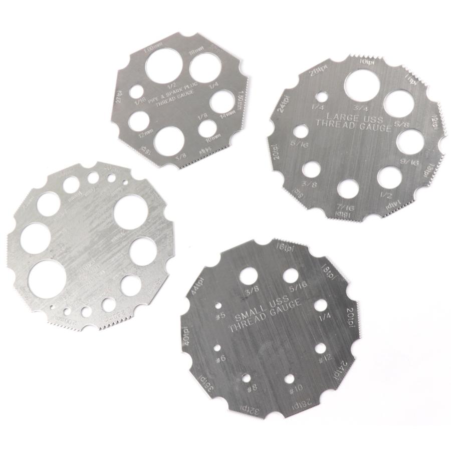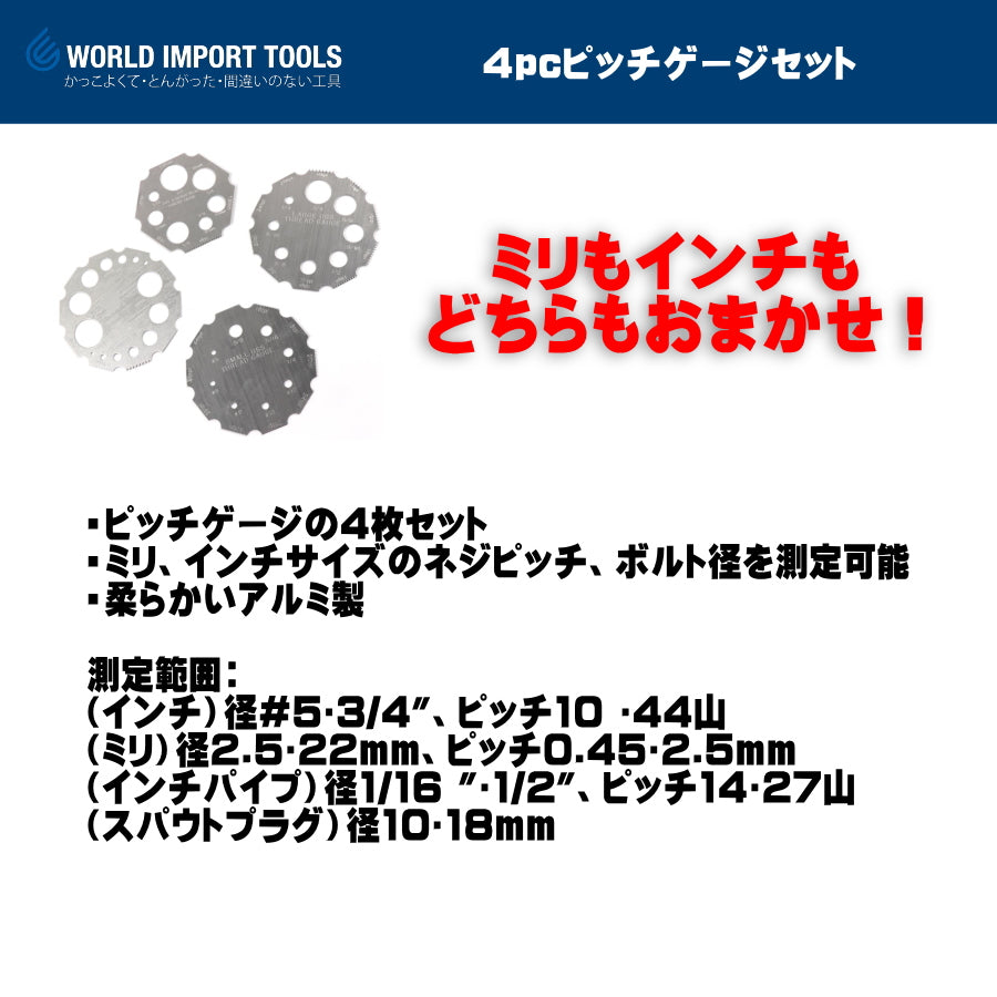 ネジの山と山の間の距離(ネジピッチ)を測る為の丸型プレートのピッチゲージの4枚セットです。