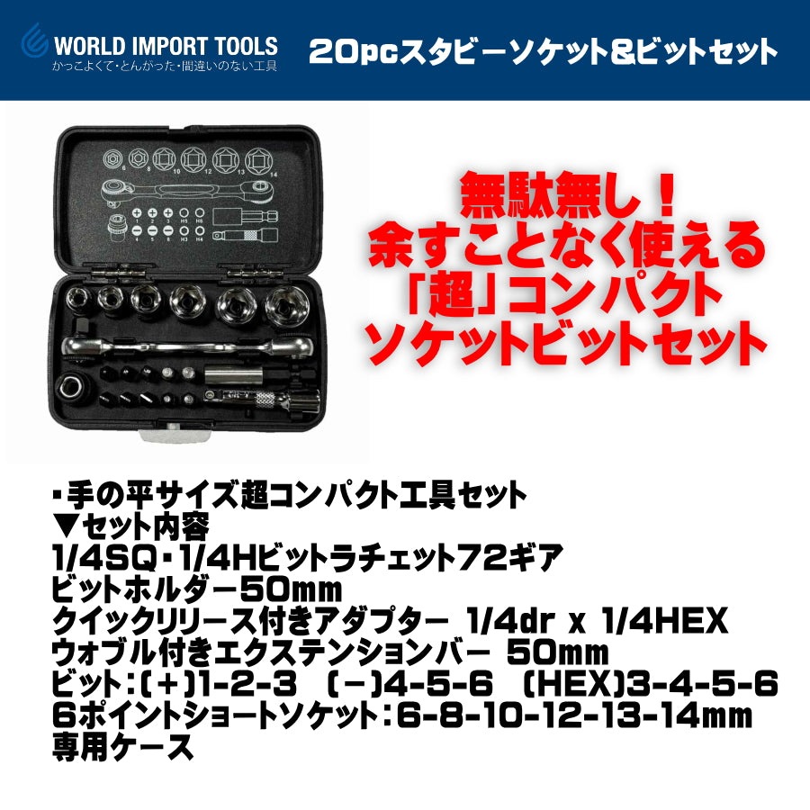 WIT 1/4dr 20pc スタビーソケット&ビットセット 5018162