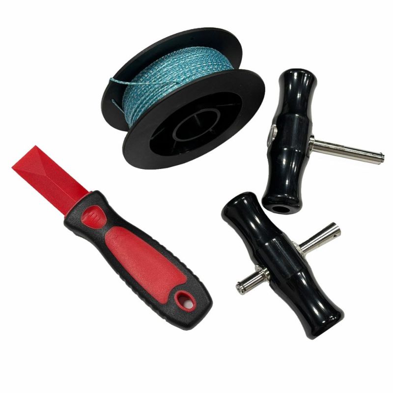高強度なナイロン素材ワイヤーを2つのハンドルに通すだけです。