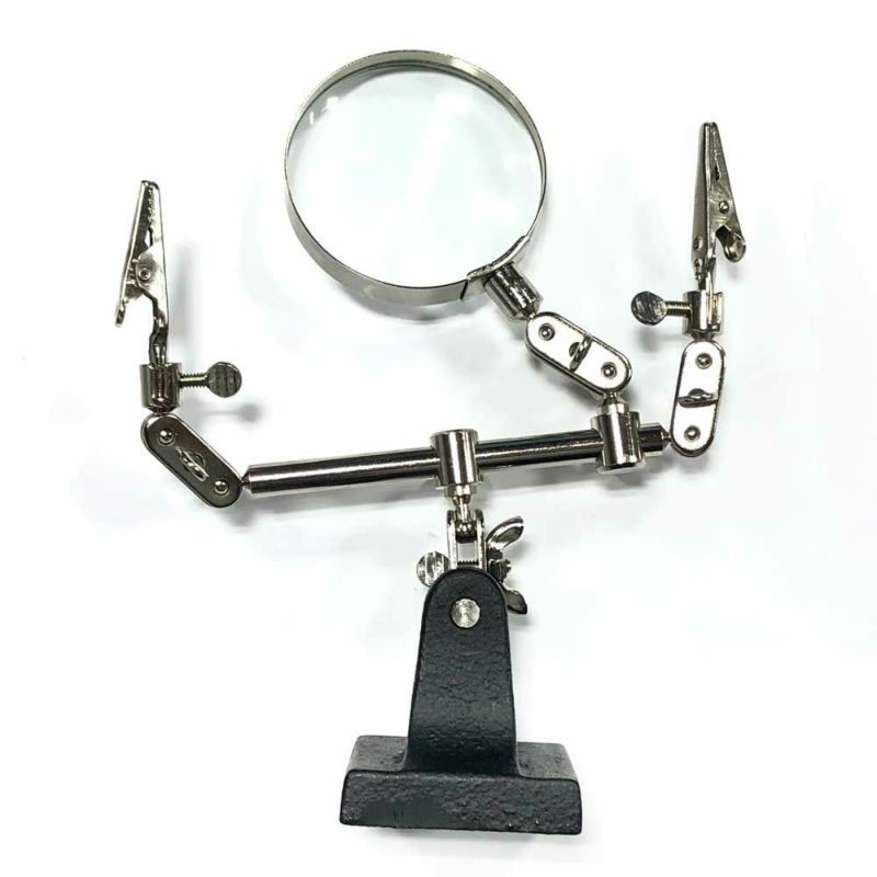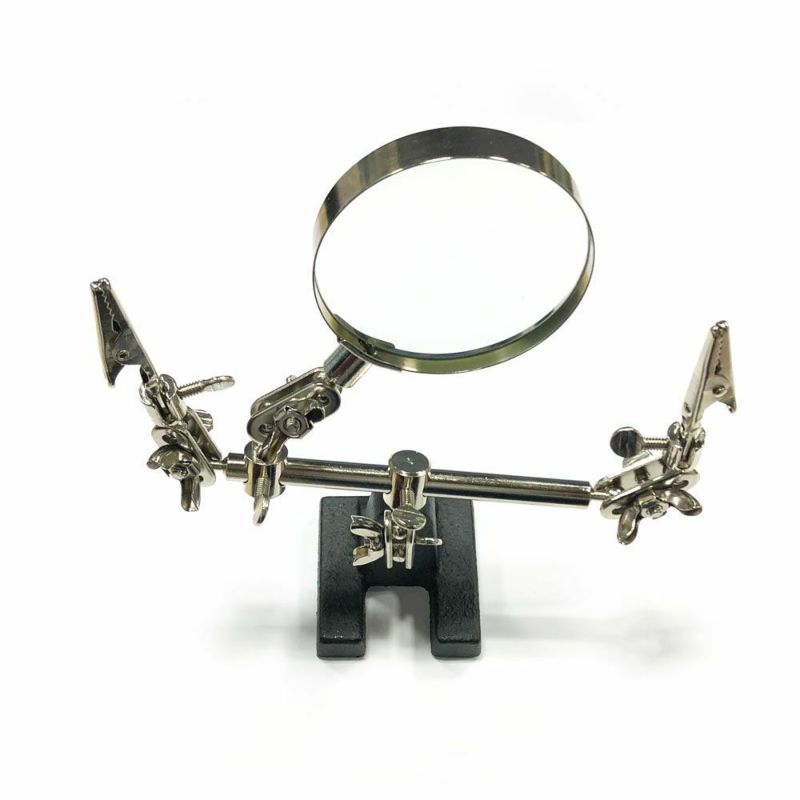配線のハンダ付けなどの際に、対象物を固定し、両手をフリーにして作業を行なう事が出来る便利なお助けアイテムです。