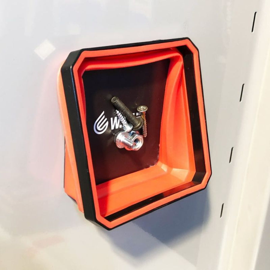 底面にはマグネットが施されているため、壁面にくっ付けるだけではなく、入れたものの保管にも優れています。